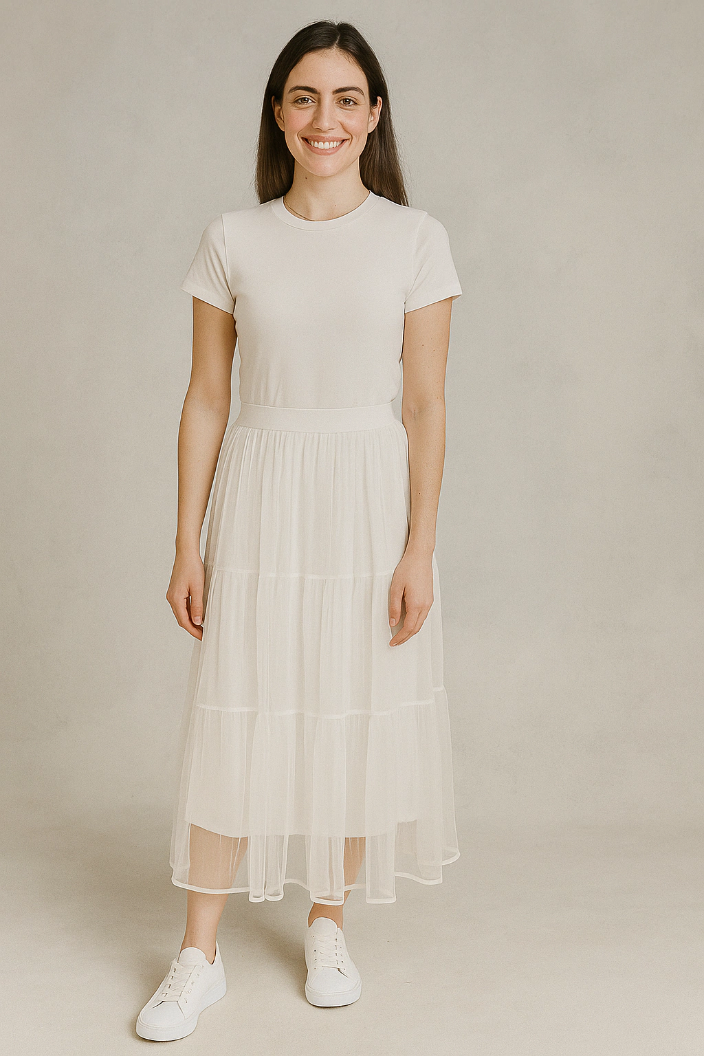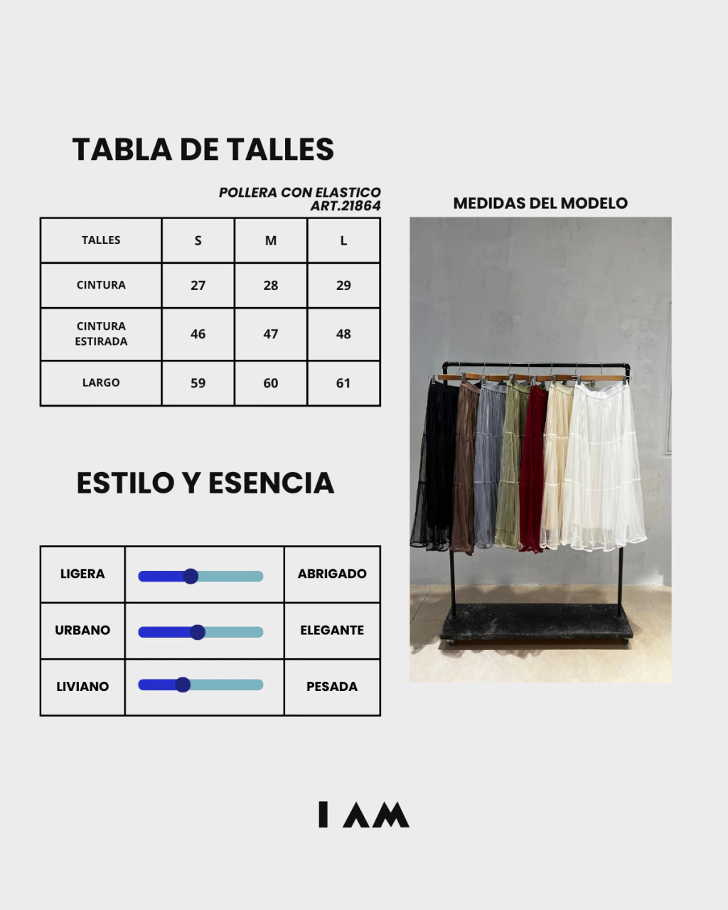 Confeccionada en tul suave con forro interior liviano, aporta ligereza, frescura y un efecto visual etéreo que la hace perfecta para primavera y verano. Su textura y caída elevan cualquier look sin esfuerzo. Se combina fácil con tops al cuerpo, remeras básicas o blusas. Queda perfecta con zapatillas, botas o sandalias, lo que la vuelve una prenda ultra versátil.