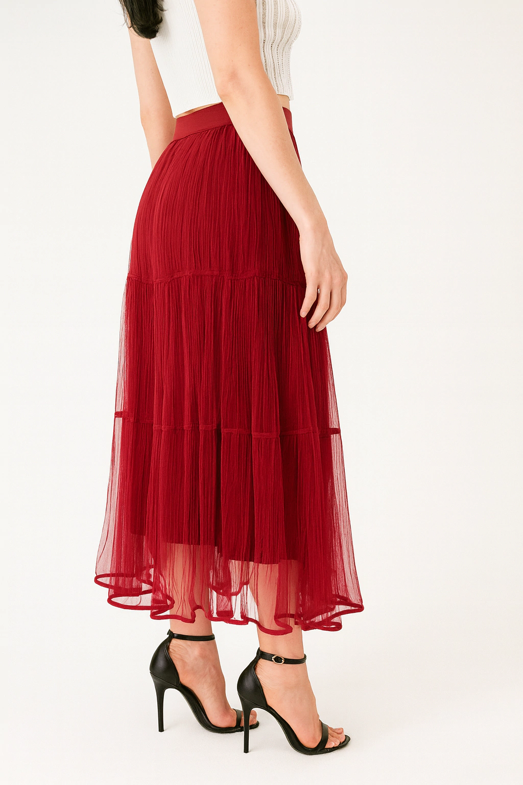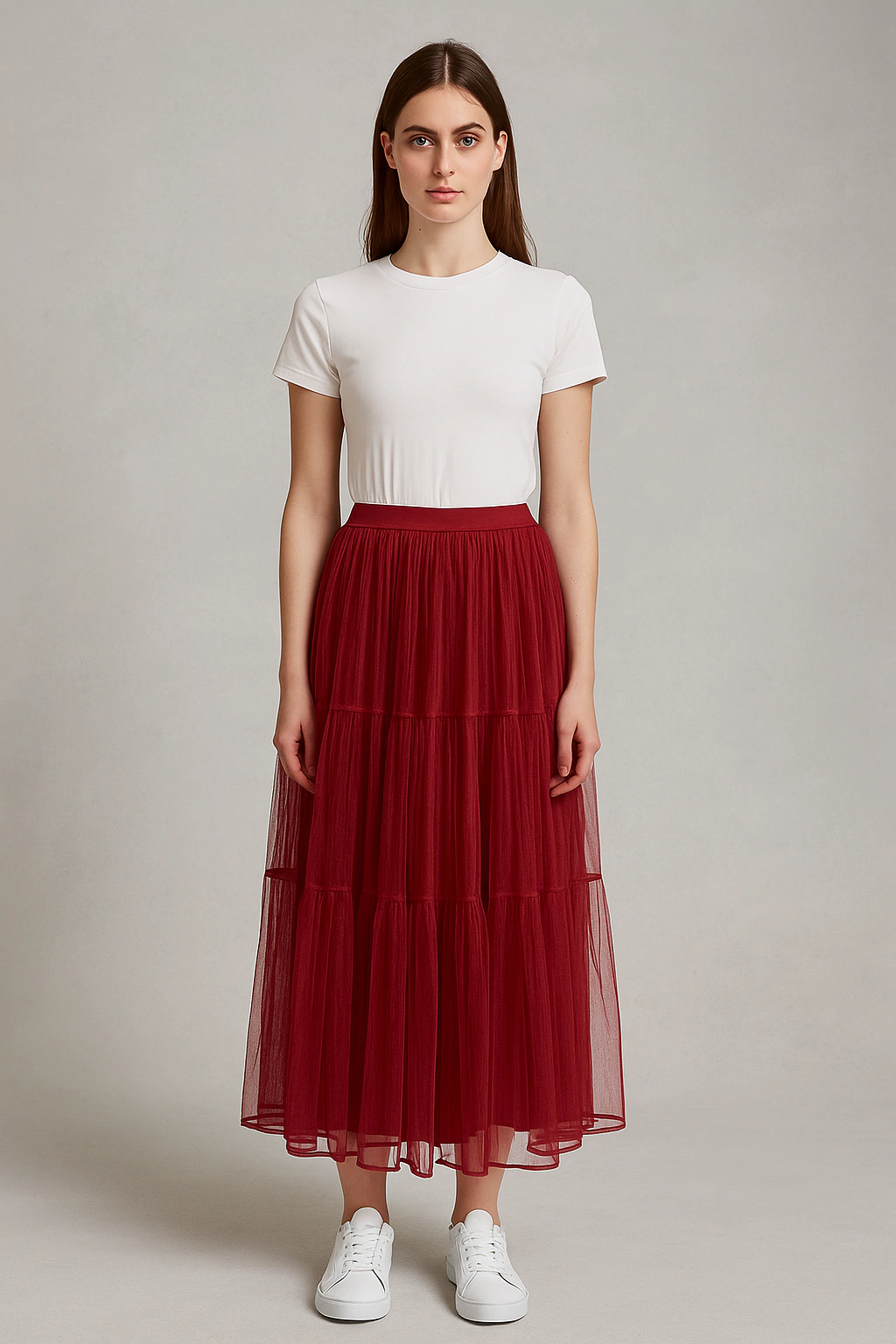 Falda larga de tul plisado en capas, con un diseño liviano, vaporoso y con caída amplia y fluida. Cintura alta y elástica, sin cierres ni botones, lo que garantiza un calce cómodo y adaptable a distintos cuerpos. El largo llega al tobillo, con un look voluminoso pero liviano que genera movimiento al caminar. Ideal para lograr un estilo impactante sin sacrificar comodidad.