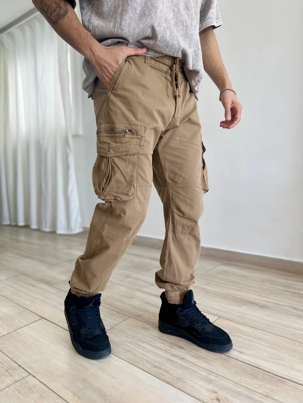 Cuenta con bolsillos laterales cargo con solapa y botón, cintura elastizada con cordón ajustable y terminaciones reforzadas para mayor durabilidad. El ruedo con elástico brinda un ajuste moderno que realza el fit y permite llevarlo con zapatillas o botas.