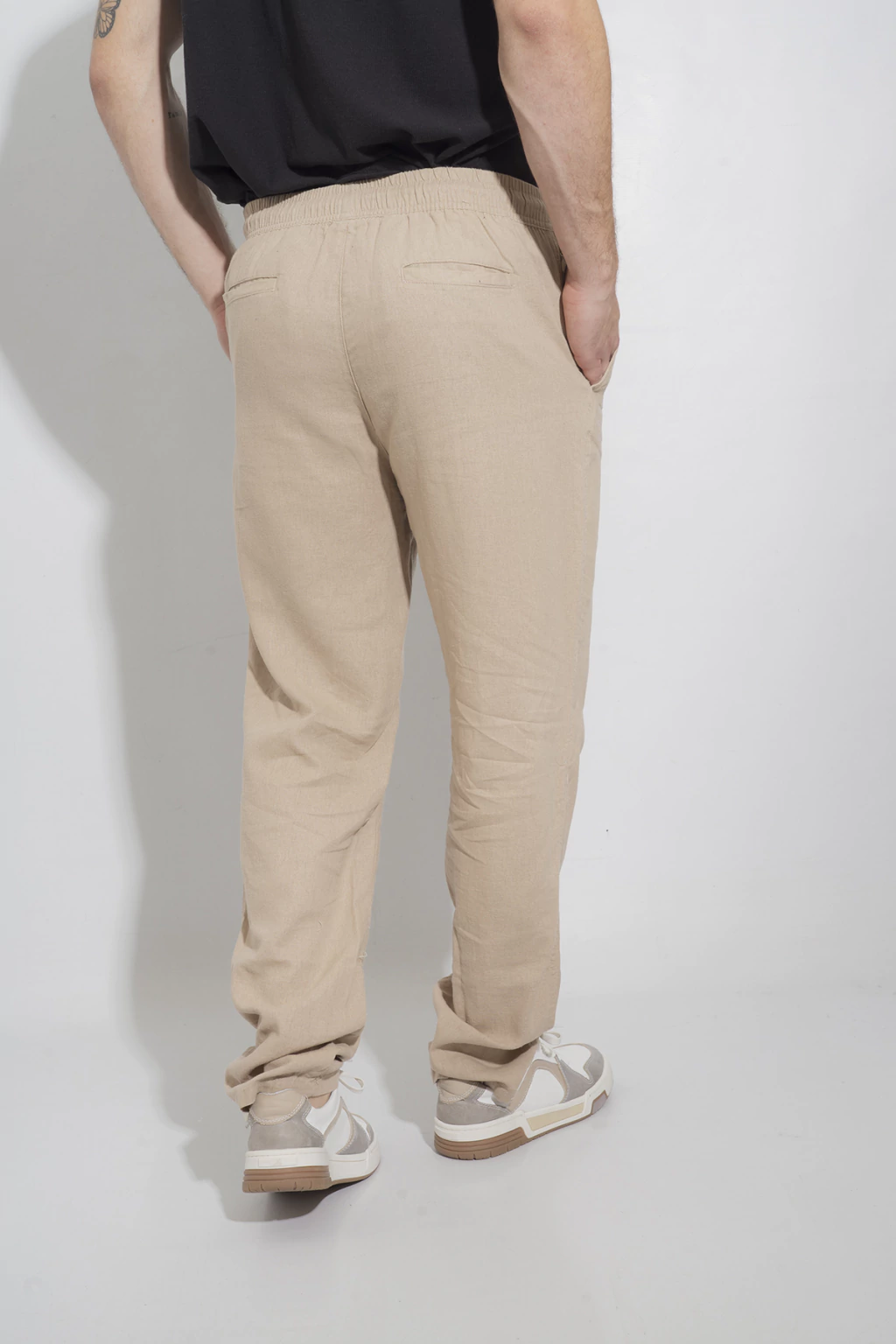 Su confección en lino de alta calidad aporta frescura y ligereza, ideal para la temporada de verano, mientras que el diseño recto con terminación elastizada en botamanga lo convierte en una pieza moderna y fácil de combinar tanto con remeras básicas como con camisas.
