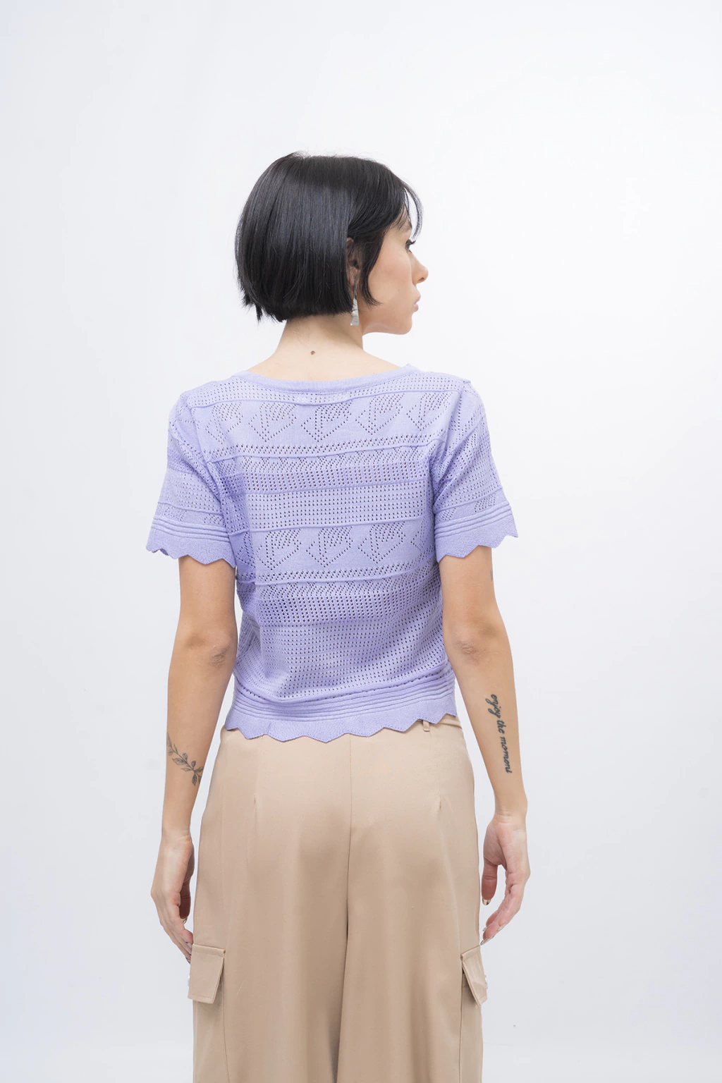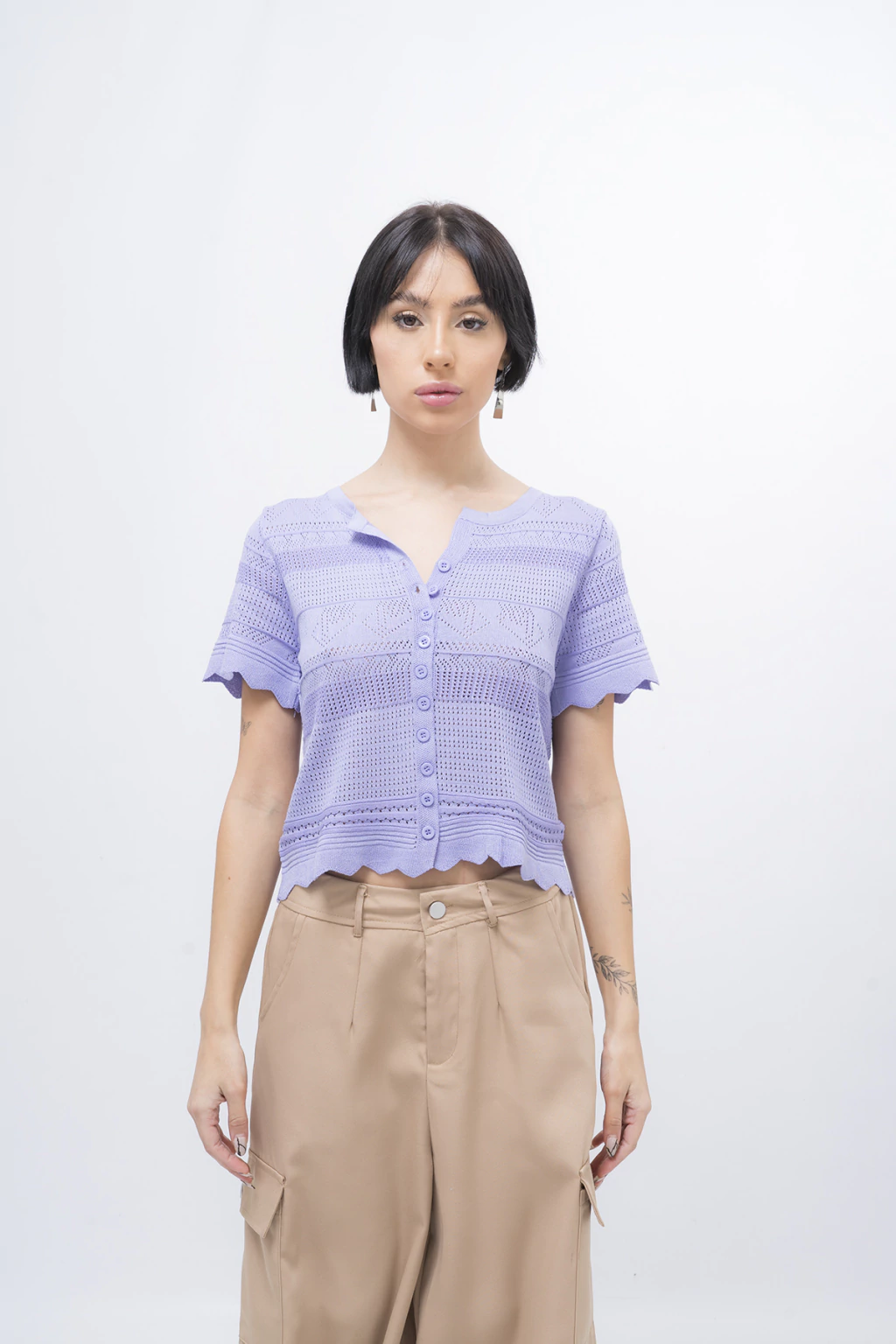 Descubrí la Remera de Hilo con Botones, confeccionada en tejido de punto liviano que aporta frescura y comodidad. Su diseño presenta escote en V, manga corta y una fila de botones frontales que suman un detalle delicado y femenino.