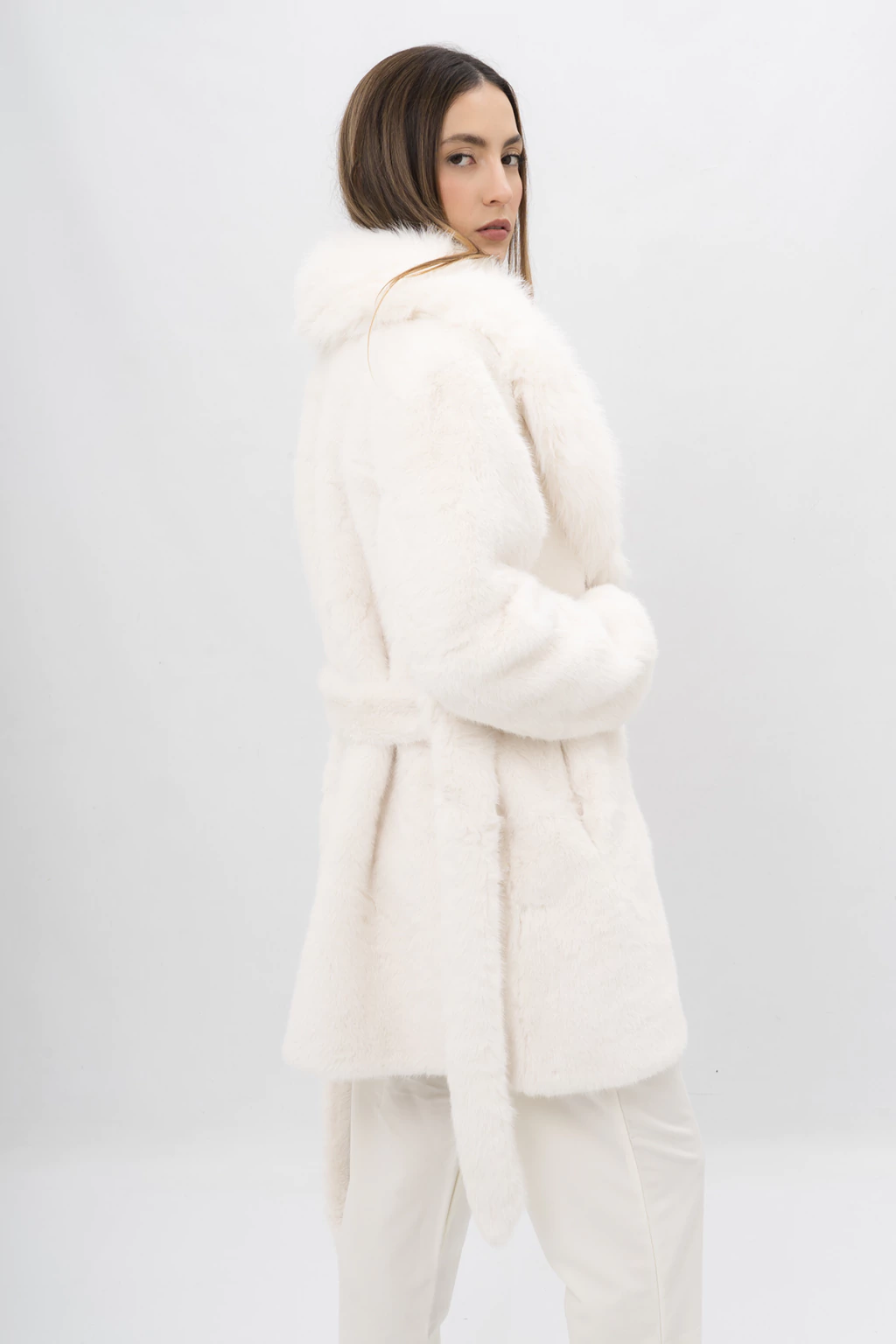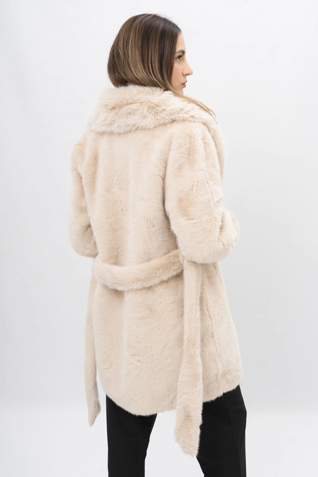Su corte clásico con cuello amplio realza la silueta y aporta un aire sofisticado, mientras que el cinturón ajustable permite definir la figura a gusto. Los bolsillos laterales suman practicidad y calidez, haciendo de este tapado una pieza versátil para múltiples estilos.