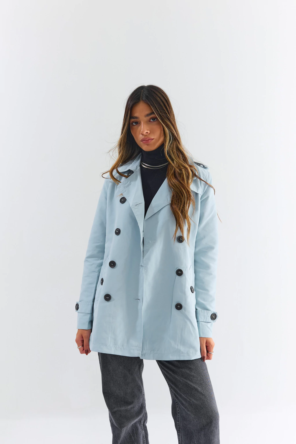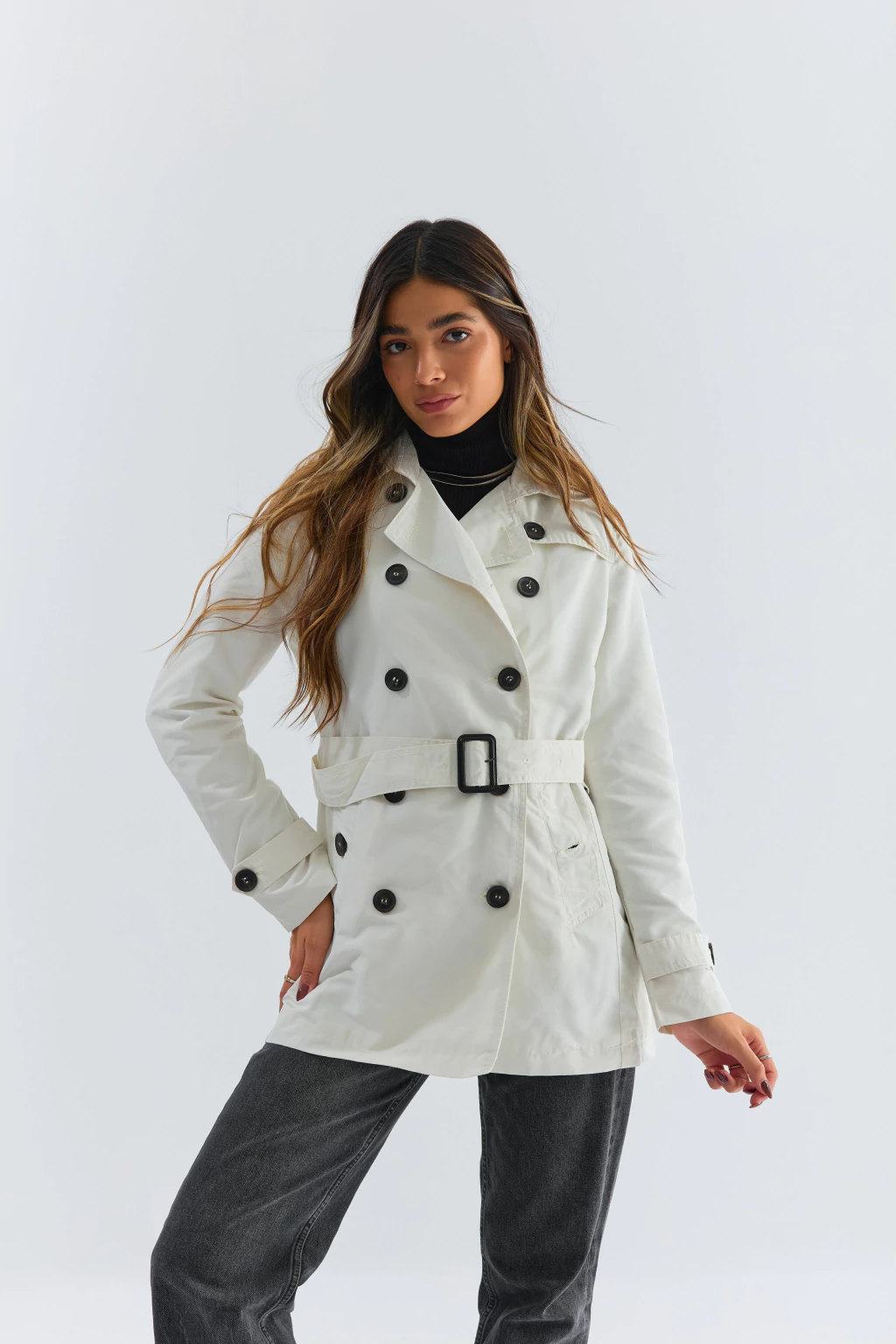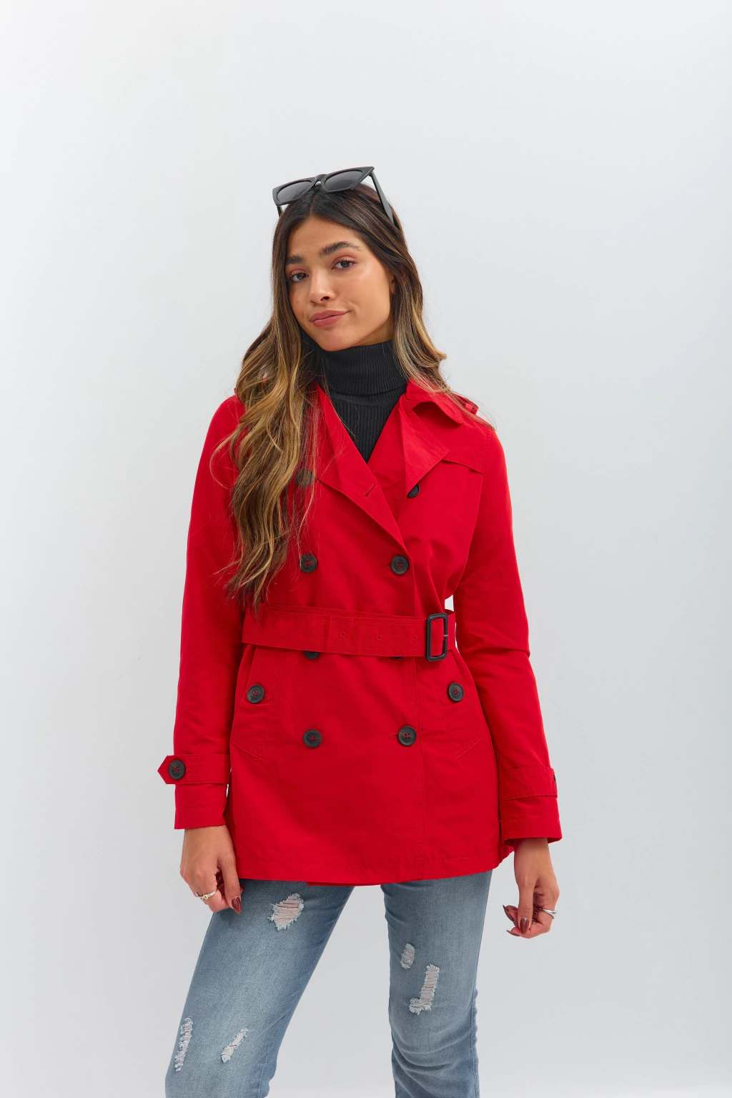 Su diseño clásico con botones y cinturón ajustable resalta la figura, mientras que el corte moderno y los detalles de solapas lo hacen perfecto para combinar con cualquier outfit. Ideal para el entretiempo, esta prenda es perfecta para quienes buscan comodidad sin perder estilo.